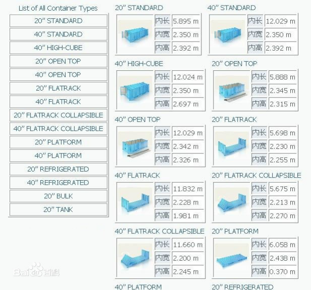 集裝箱外尺寸、內(nèi)尺寸、毛重、載重、體積,一