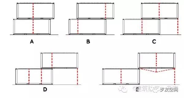 集裝箱結(jié)構(gòu)太重要了!再有創(chuàng)意,設(shè)計手法再純粹,只要結(jié)構(gòu)一加,分分鐘會毀掉一個方案。這塊一般情況下要依據(jù)相應(yīng)的標(biāo)準(zhǔn)做下結(jié)構(gòu)力的測算。下面列舉幾種形式的加柱方式。當(dāng)然,也可以使用斜撐的結(jié)構(gòu)。室內(nèi)設(shè)計的時候還要考慮如何裝飾鋼筋混凝土柱,鋼柱等結(jié)構(gòu)構(gòu)件,讓它們與室內(nèi)融為一體。一些附加的構(gòu)件、墻體去和集裝箱組合成一體是一種重要的方式,它會讓你的集裝箱建筑顯得不那么太工業(yè)味道。