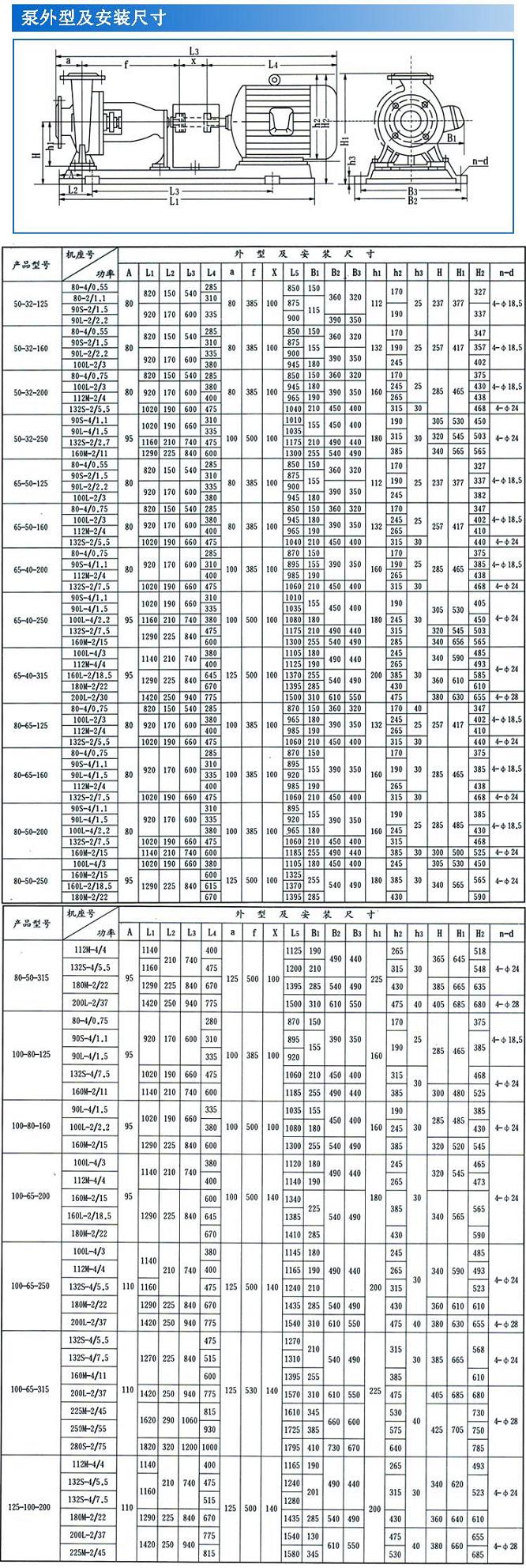 IH型不銹鋼化工離心泵(安裝尺寸):