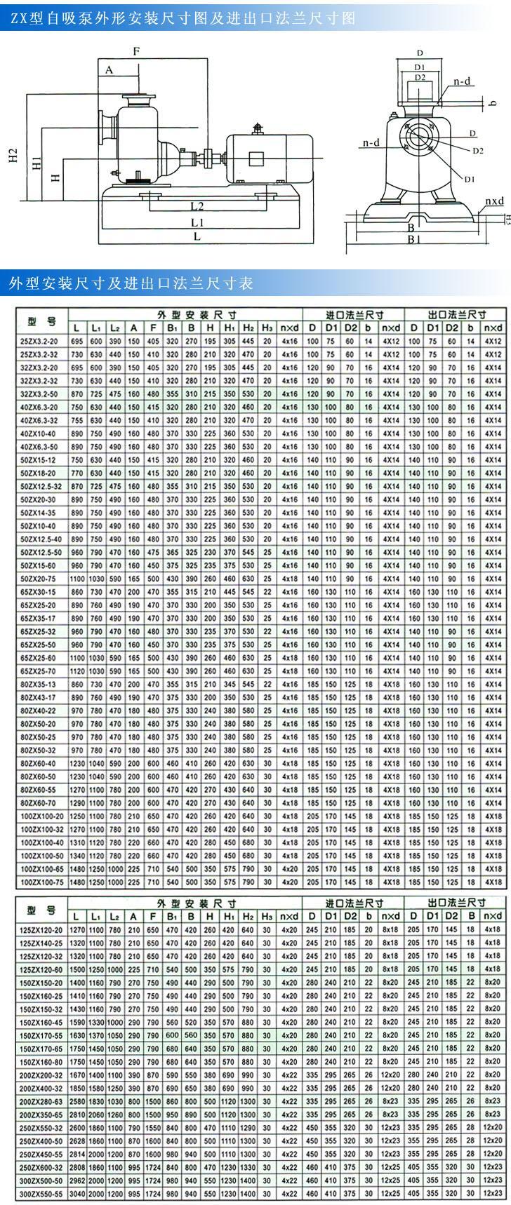 ZX系列臥式自吸離心泵(安裝尺寸):