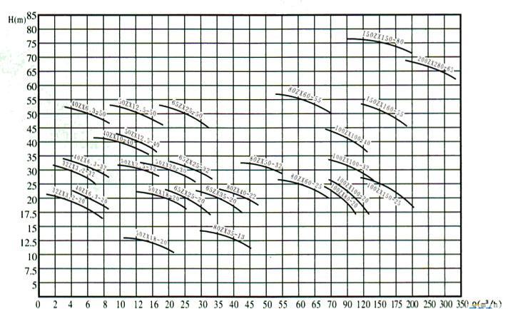 應(yīng)用范圍 工作條件 流量:3~800m 3 /h ZX系列臥式自吸離心泵(曲線圖譜)