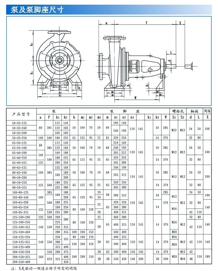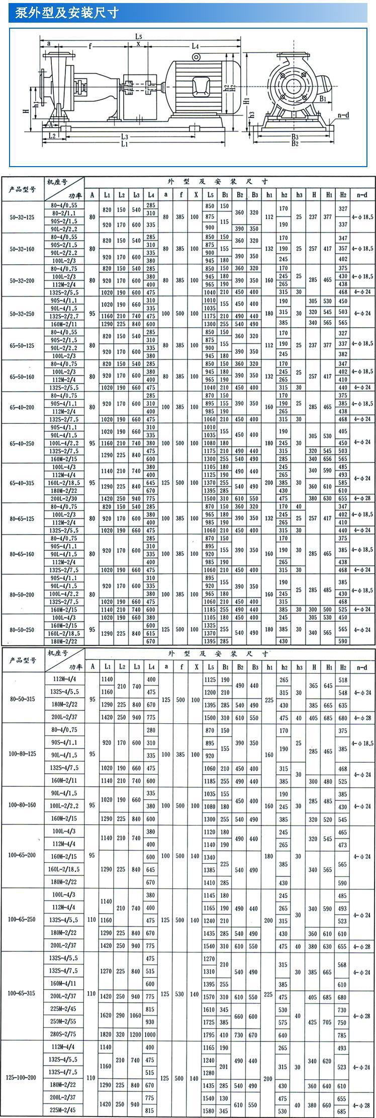 IS、IR型臥式單級單吸清水離心泵安裝尺寸: