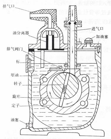 定子浸在油中起潤(rùn)滑,密封和堵塞縫隙的作用。從結(jié)構(gòu)圖我們也可以看出,如果真空泵電機(jī)反轉(zhuǎn),那么泵內(nèi)的真空油會(huì)從吸氣口中噴出。