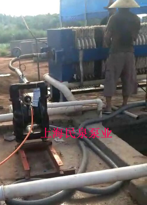 壓濾過(guò)程需要用到我們的泵。原先一般都選用螺桿泵,因?yàn)槠鋲毫Υ?,可輸送污料,但其缺點(diǎn)就是橡膠套磨損太快?,F(xiàn)在一般都是用氣動(dòng)隔膜泵代替。民泉新款氣動(dòng)隔膜泵具有壓力大,不死機(jī)的特點(diǎn),在壓濾機(jī)上得到很好的應(yīng)用。