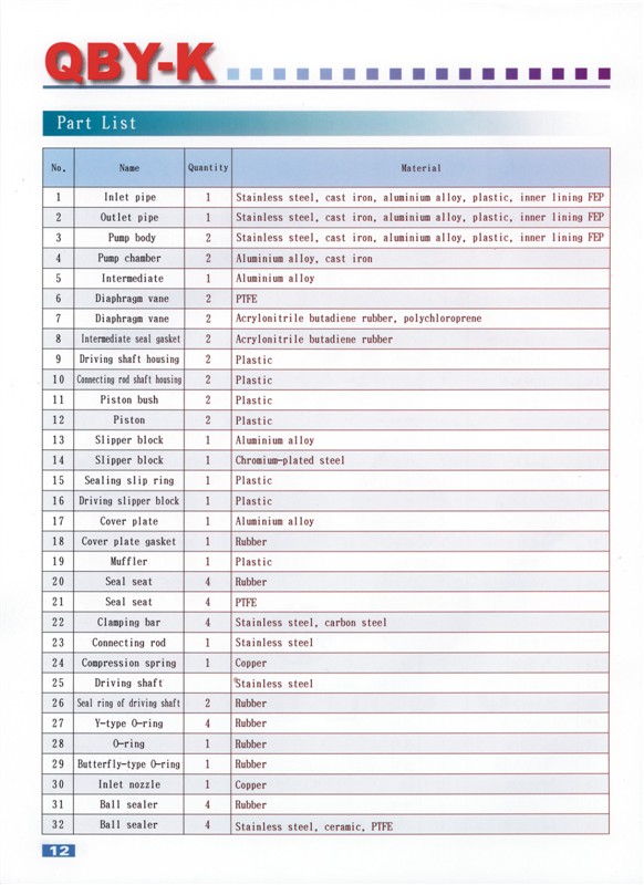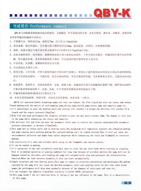 QBY(K)氣動隔膜泵使用說明書(分解圖)